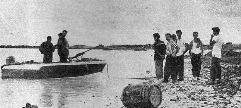 Felipe Vidal Santiago, left, with hand on hip. This is possibly the launch of the March 1964 raid on which he was captured and later executed, along with Ladislao Gonzales Benitez, Elias Rivera Bello and Alfredo Valdes Linares.
